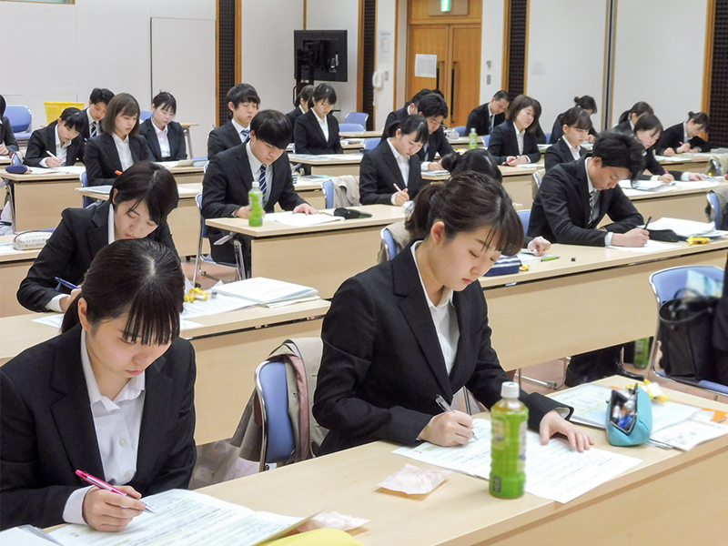 荘内銀行や東北公益文科大学から外部講師をお迎えし、ビジネスマナーや社会人として働くということについて講話がありました。